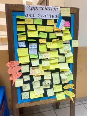 Through activities like our gratitude wall, I’m teaching my students the importance of acknowledging and appreciating the contributions of others, fostering a culture of inclusivity and positivity.