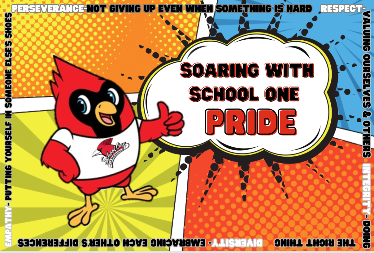 Enter the “Soaring with School One P.R.I.D.E.” Program. The acronym “P.R.I.D.E.” stands for Perseverance, Respect, Integrity, Diversity, and Empathy. Now at School One, all students know what these words mean, what it looks like to demonstrate these values in any setting, and how to encourage them in others.